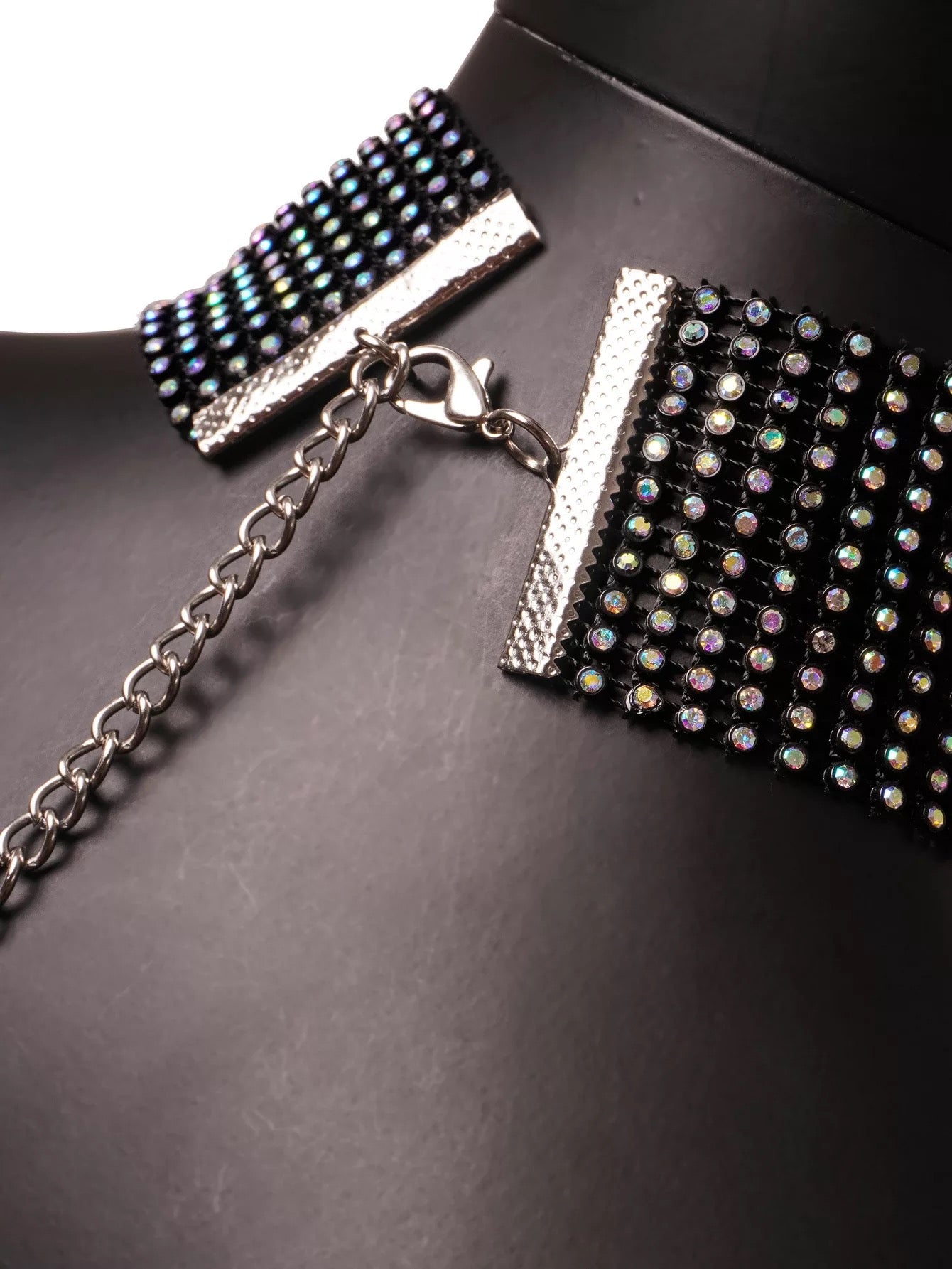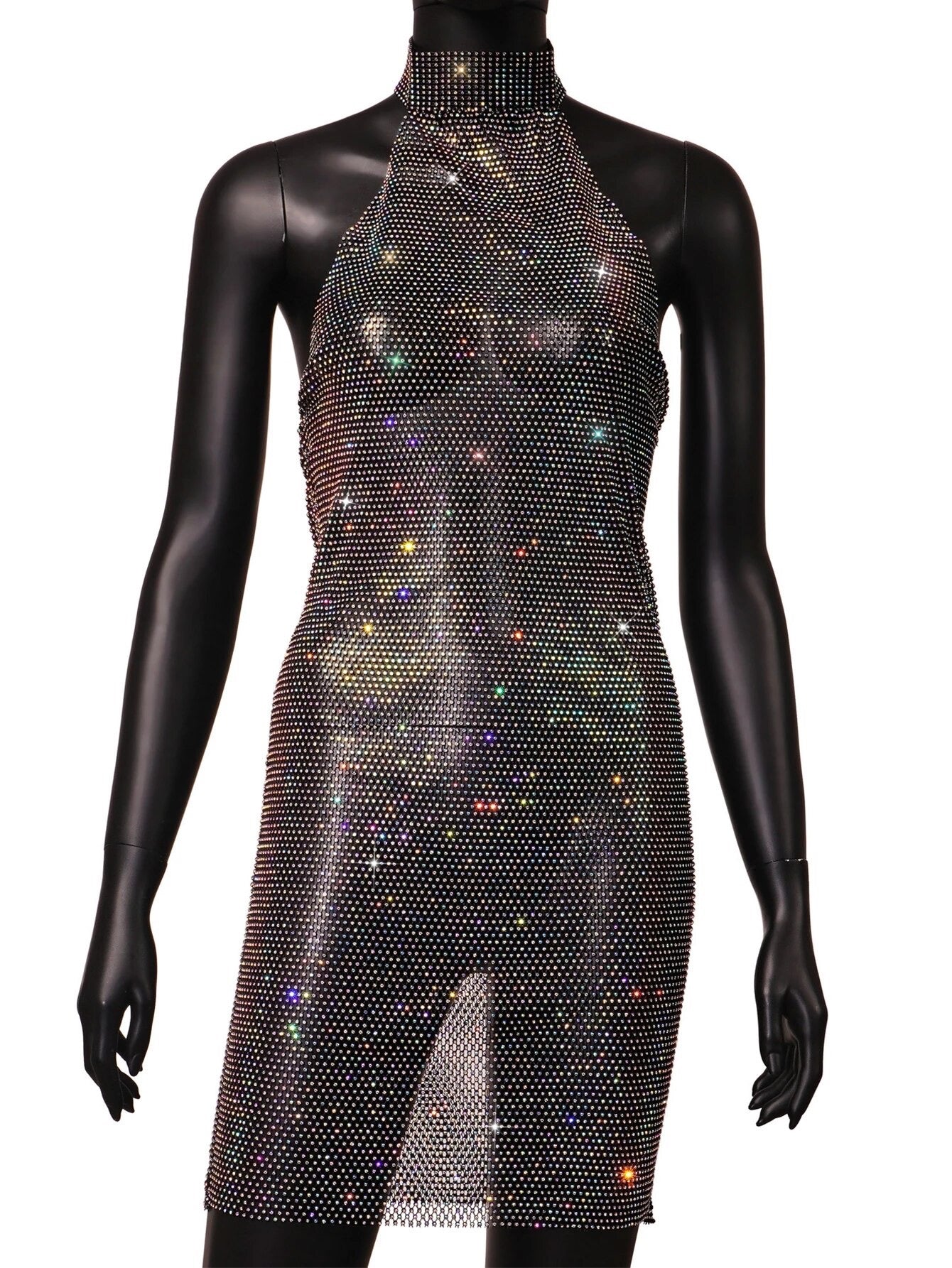 Rhinestone fishnet see through open back dress.