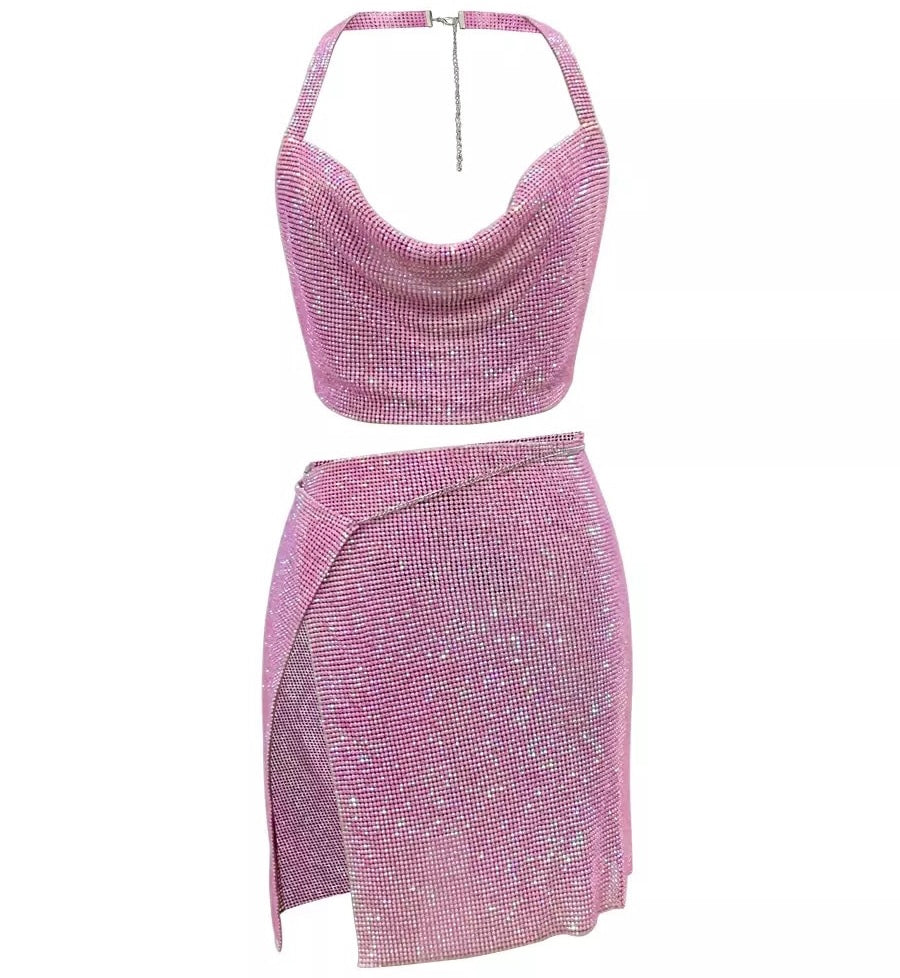 Rhinestone two piece set. Includes top and skirt.